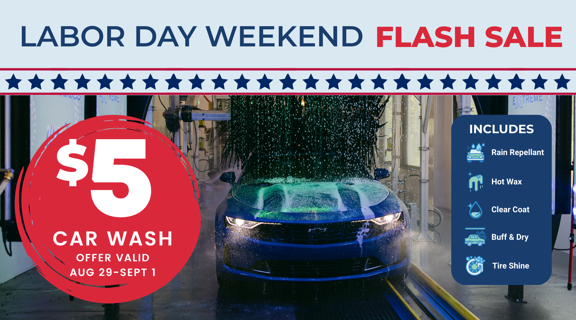 Sign up below to claim! Your car deserves a shine as strong as your holiday plans. This Labor Day weekend, get one of our top washes — The Wave — for just $5 (regularly $20). Just fill out the form below and we’ll email your voucher.